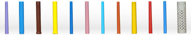 Conos estándar, conos perforados especiales para vaporizado y teñido, conos para tejidos de punto, carreteles, tubos para texturizado, conos y cilindros para telares sin lanzadera, con o sin tratamiento superficial de gamuzado (Peeling)